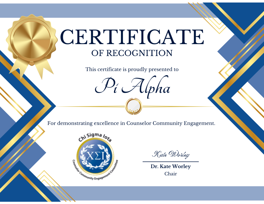 Finally, we would like to keep hearing about your projects! The following link will take you to the CSI Chapter Highlights Submission page where you can submit chapter events related to counselor community engagement and chapter development. CSI Chapter Highlights Submission – Chi Sigma Iota Thank you for your dedication to community engagement! We look forward to highlighting your chapter’s accomplishments!